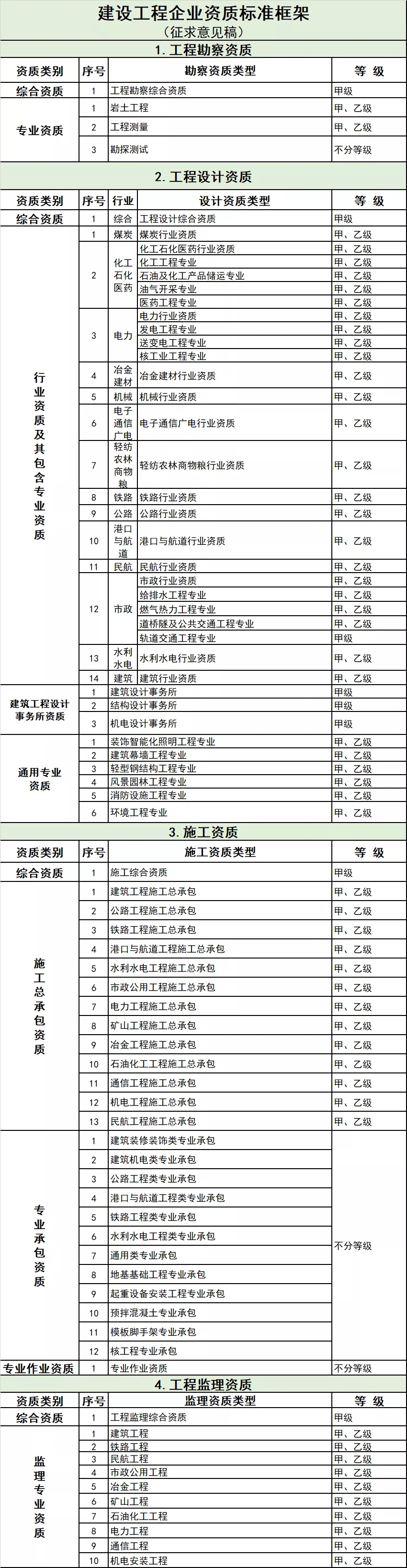 附:《建設工程企業(yè)資質(zhì)標準框架(征求意見稿)》