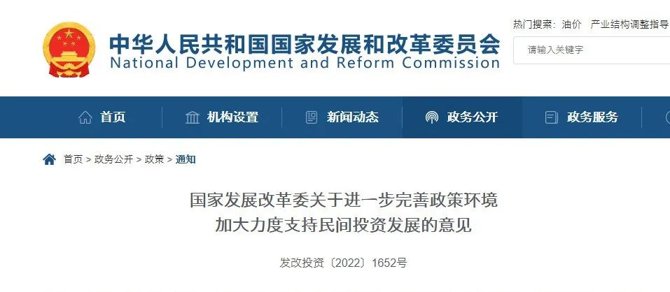 1.國(guó)家發(fā)展改革委發(fā)布進(jìn)一步完善政策環(huán)境加大力度支持民間投資發(fā)展的意見(jiàn)