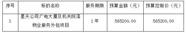 星天公司廣電大廈及機(jī)關(guān)院落物業(yè)服務(wù)外包項(xiàng)目