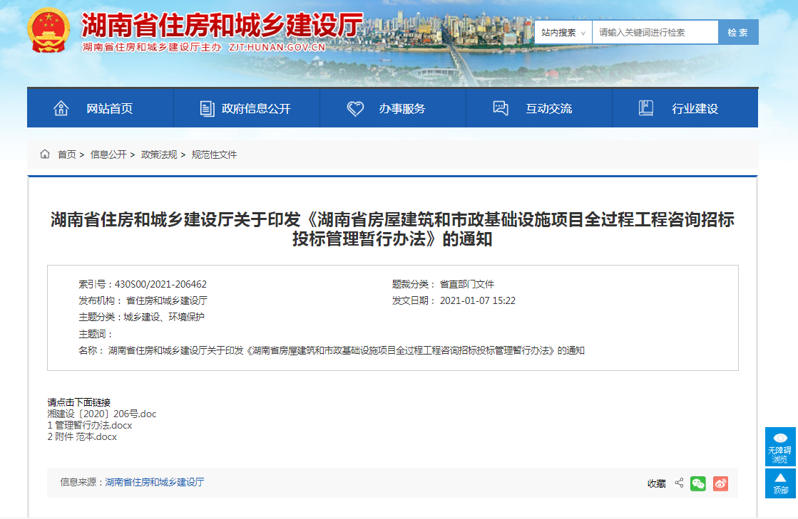 第一條 為推進房屋建筑和市政基礎(chǔ)設(shè)施領(lǐng)域全過程工程咨詢發(fā)展,規(guī)范全過程工程咨詢招標投標活動,根據(jù)《中華人民共和國招標投標法》《中華人民共和國招標投標法實施條例》《建筑工程設(shè)計招標投標管理辦法》等法律法規(guī)和《國家發(fā)展改革委 住房城鄉(xiāng)建設(shè)部關(guān)于推進全過程工程咨詢服務(wù)發(fā)展的指導(dǎo)意見》、《湖南省人民政府辦公廳關(guān)于完善質(zhì)量保障體系提升建筑工程品質(zhì)的若干措施的通知》等文件,結(jié)合本省實際,制定本辦法。