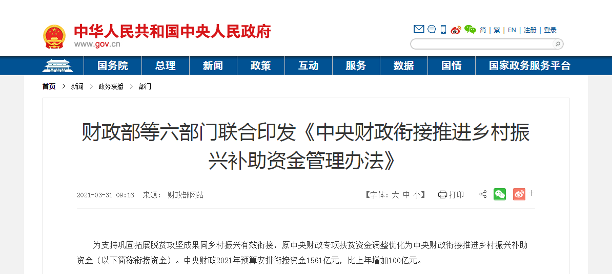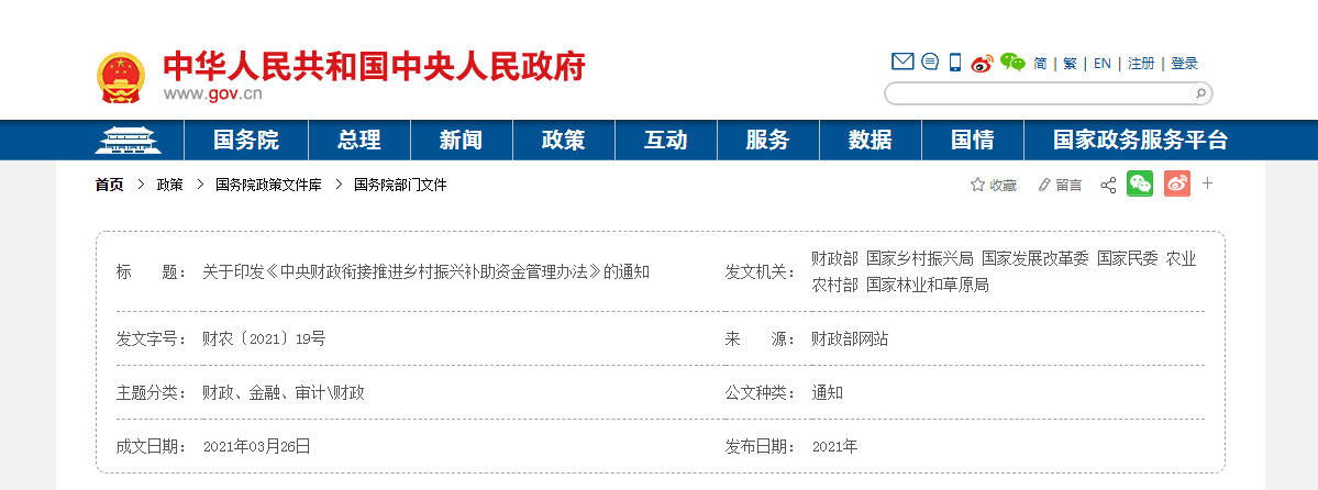 中央財政銜接推進鄉(xiāng)村振興補助資金管理辦法