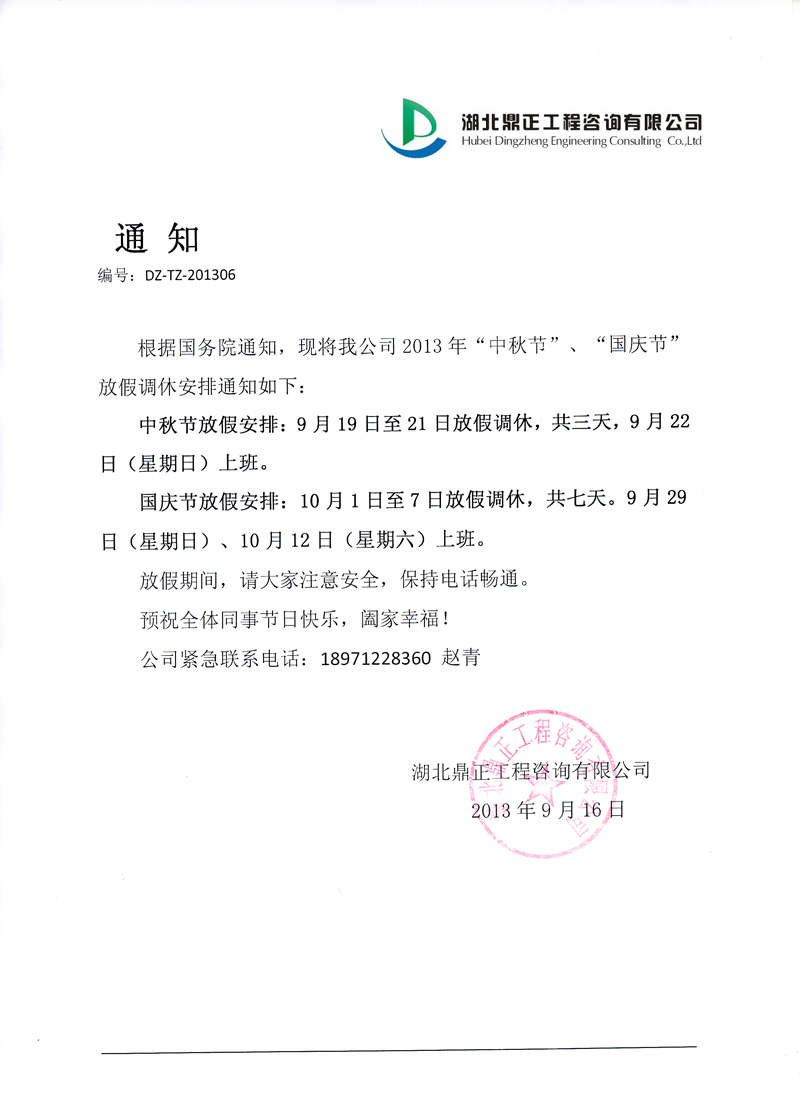 2013年“中秋國(guó)慶節(jié)”放假通知