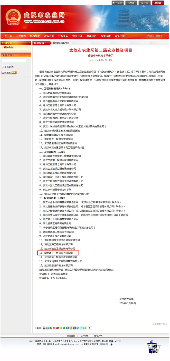 我公司入選武漢市農(nóng)業(yè)局第二屆農(nóng)業(yè)投資項(xiàng)目中介機(jī)構(gòu)庫(kù)