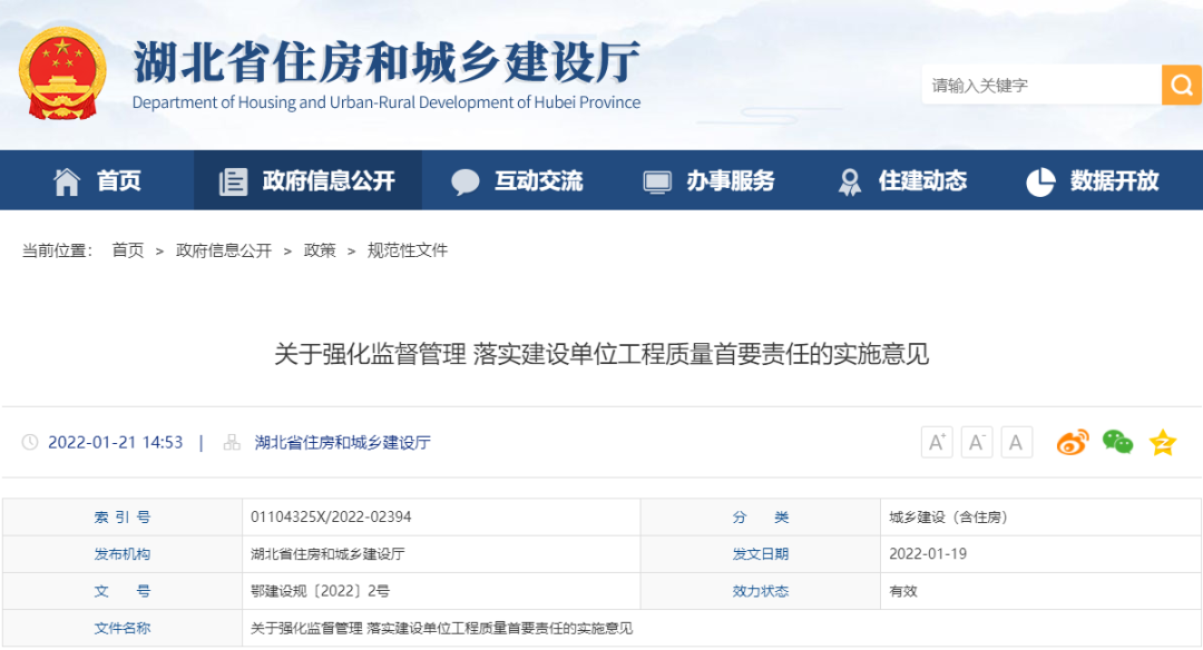 各地要建立健全建設單位落實首要責任監(jiān)管機制,加大政府監(jiān)管力度,強化信用管理和責任追究,切實激發(fā)建設單位主動關心質量、追求質量、創(chuàng)造質量的內生動力,確保建設單位首要責任落到實處。