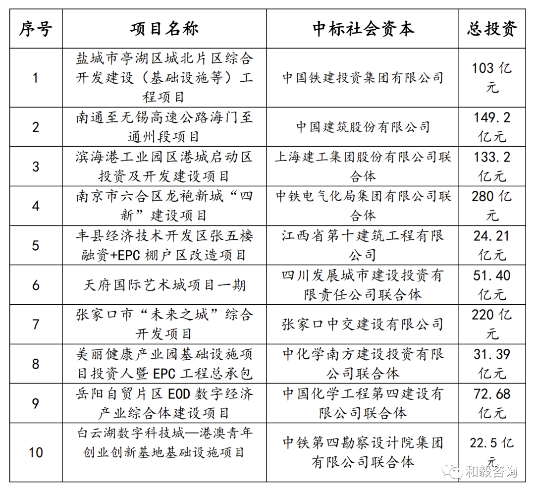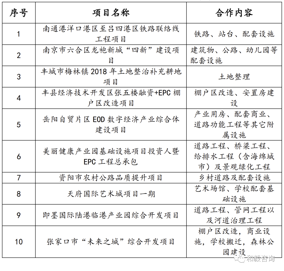 從投資人+EPC模式的實質(zhì)來看,其就是國企項目的股權融資,通常是國企單位承擔了城建項目開發(fā)任務,并依托該項目尋找社會合作伙伴,共同出資、成立項目公司。當前該模式下合作范圍主要包括城鎮(zhèn)化建設、工業(yè)園區(qū)開發(fā)、鄉(xiāng)村振興、農(nóng)業(yè)資源開發(fā)、市政基礎設施建設、文旅綜合體、城中村改造、老舊街區(qū)提檔升級改造等方面,尤其以綜合性的片區(qū)開發(fā)居多。該模式下主要合作內(nèi)容主要有土地開發(fā)整理、基礎設施開發(fā)、商業(yè)開發(fā)、產(chǎn)業(yè)招商服務、公租房出租、廠房運營管理等。