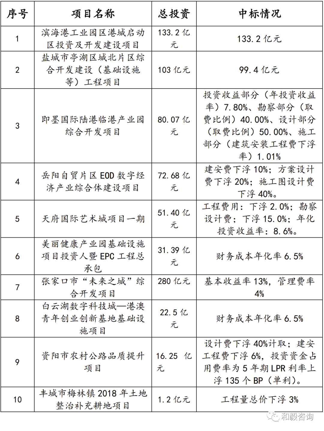 表3 國內(nèi)“投資人+EPC”典型項目中標情況表