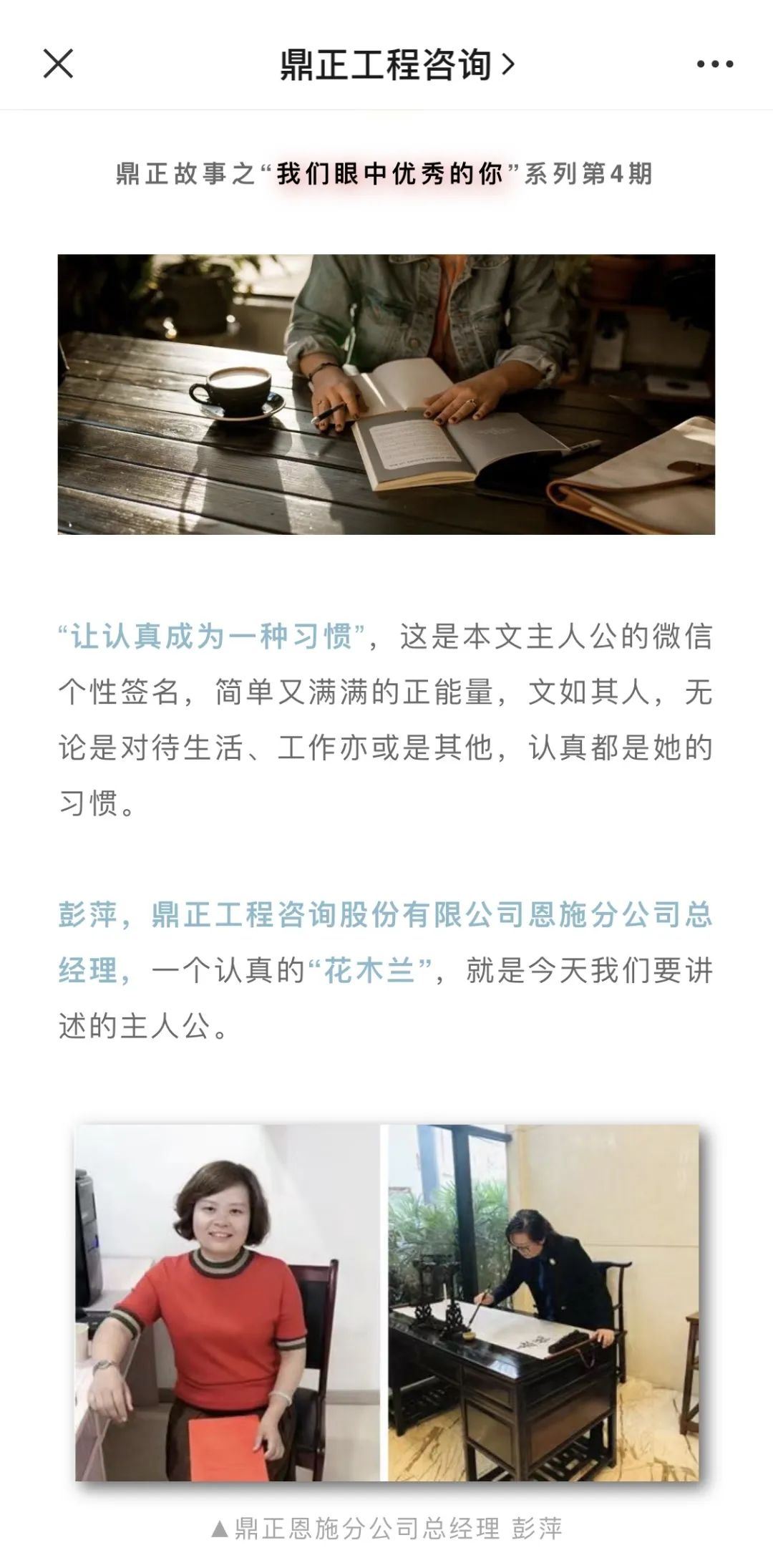 “鼎正工程咨詢”微信公眾號(hào),既是公司品牌傳播的窗口,也是同事們互動(dòng)交流的平臺(tái)。從2020年起,微信公眾號(hào)便相繼推出了“我們眼中優(yōu)秀的你”、“鼎正故事”、“榜樣人物”、“鼎正人物”等人文宣傳板塊,通過深度挖掘工程師的成長故事,全方位展示鼎正人的企業(yè)文化,為讀者奉上一道道關(guān)于奮斗的精神大餐。