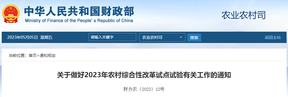 為深入貫徹黨的二十大精神,認(rèn)真落實(shí)2023年中央一號(hào)文件“深化農(nóng)村改革”、“深入推進(jìn)農(nóng)村綜合改革試點(diǎn)示范”的任務(wù)要求和中共中央、國(guó)務(wù)院印發(fā)的《數(shù)字中國(guó)建設(shè)整體布局規(guī)劃》部署,在總結(jié)前期試點(diǎn)經(jīng)驗(yàn)的基礎(chǔ)上,2023年中央財(cái)政繼續(xù)支持實(shí)施并啟動(dòng)新的農(nóng)村綜合性改革試點(diǎn)試驗(yàn)(以下簡(jiǎn)稱試點(diǎn))。現(xiàn)就有關(guān)工作通知如下。