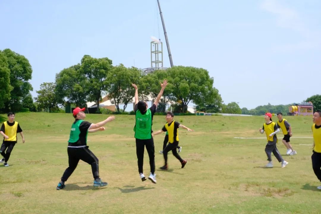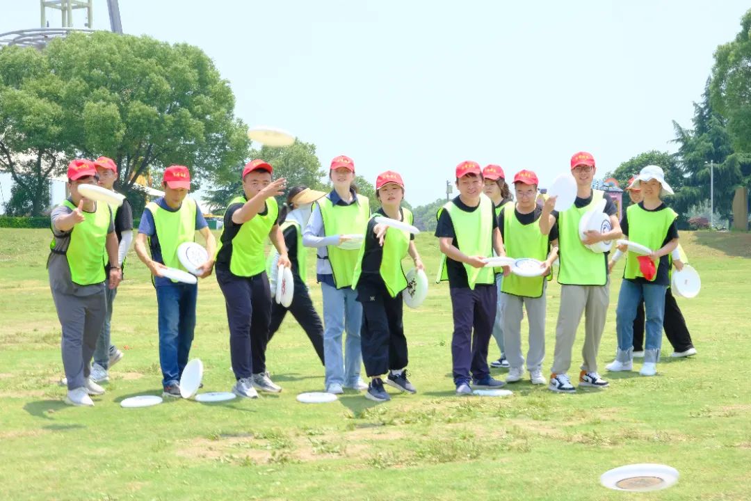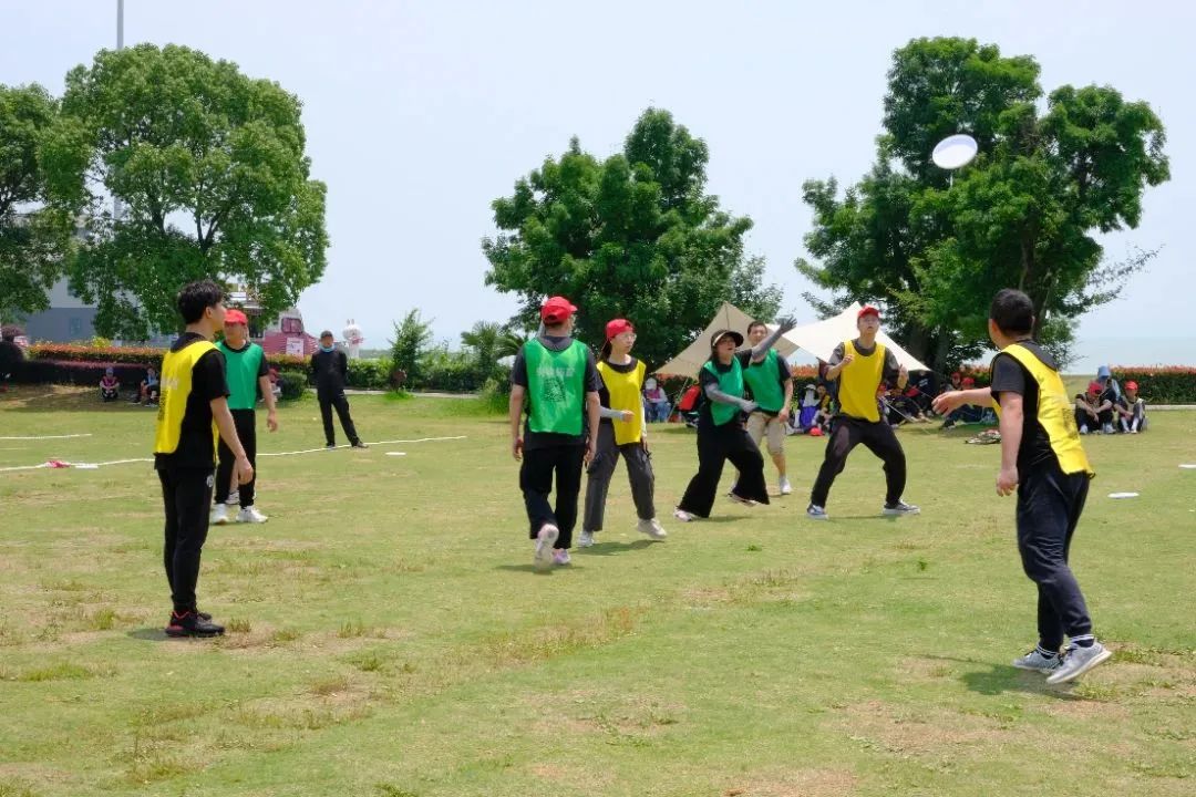 在教練的帶領(lǐng)下,大家來到戶外場地開始實(shí)地開展飛盤競賽。飛盤練習(xí)場上,有迅速上手并漸入佳境的小伙伴,有互相鼓勵(lì)對方說“沒關(guān)系,再試一次” 的組隊(duì)搭檔,也有時(shí)不時(shí)傳來歡聲笑語的同事