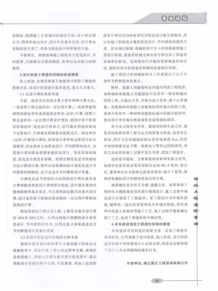 祝賀我司李光洲同志所著文章《淺談建設(shè)項目在設(shè)計階段的造價控制》在全國工程造價管理類優(yōu)秀期刊《湖北工程造價管理》2014年第4期“專業(yè)論壇”板塊發(fā)表。
