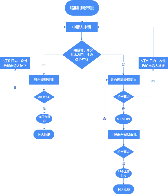 1、申請(qǐng)人向臨時(shí)用地所在地的縣(市、區(qū))自然資源主管部門提出申請(qǐng),由縣(市、區(qū))自然資源主管部門負(fù)責(zé)辦理臨時(shí)用地審批。