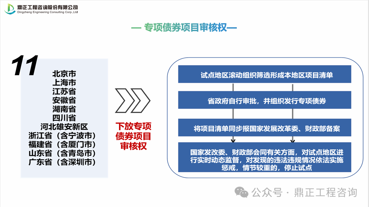 地方政府專(zhuān)項(xiàng)債券項(xiàng)目“自審自發(fā)”試點(diǎn)地區(qū)名單:北京市、上海市、江蘇省、浙江?。ê瑢幉ㄊ校?、安徽省、福建?。ê瑥B門(mén)市)、山東?。ê鄭u市)、湖南省、廣東?。ê钲谑校?、四川省、河北雄安新區(qū)等11個(gè)省市。