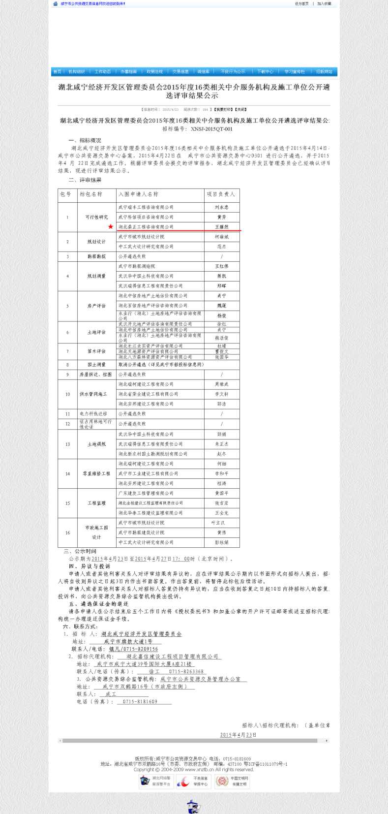【經(jīng)營成果】我司入圍湖北咸寧經(jīng)濟(jì)開發(fā)區(qū)管理委員會(huì)2015年度16類相關(guān)中介服務(wù)機(jī)構(gòu)的可行性研究單位