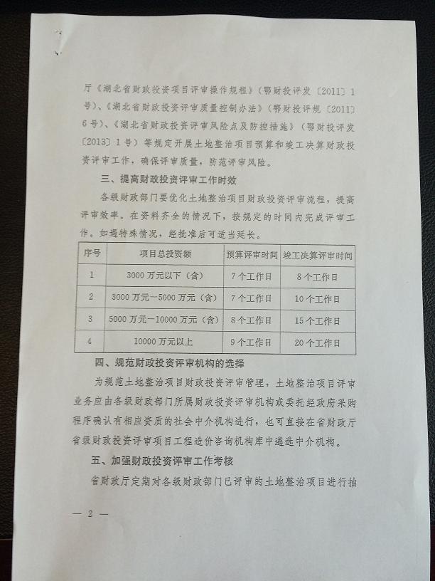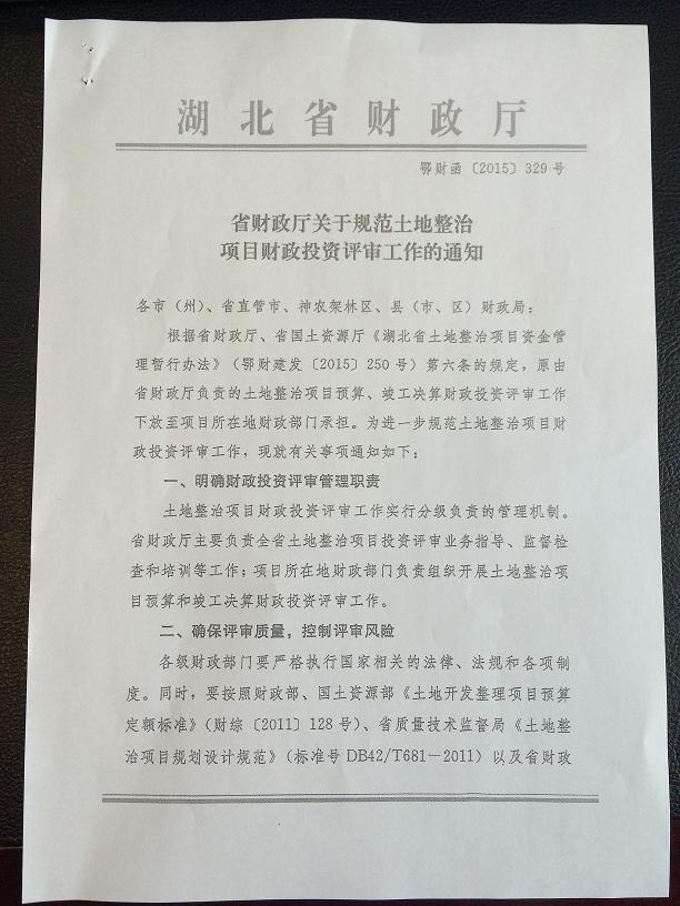 湖北省財政廳關于規(guī)范土地整治項目財政投資評審工作的通知