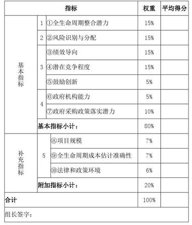 第九條 開(kāi)展物有所值評(píng)價(jià)時(shí),項(xiàng)目本級(jí)財(cái)政部門(mén)(或PPP中心)應(yīng)會(huì)同行業(yè)主管部門(mén),明確是否開(kāi)展定量評(píng)價(jià),并明確定性評(píng)價(jià)程序、指標(biāo)及其權(quán)重、評(píng)分標(biāo)準(zhǔn)等基本要求。