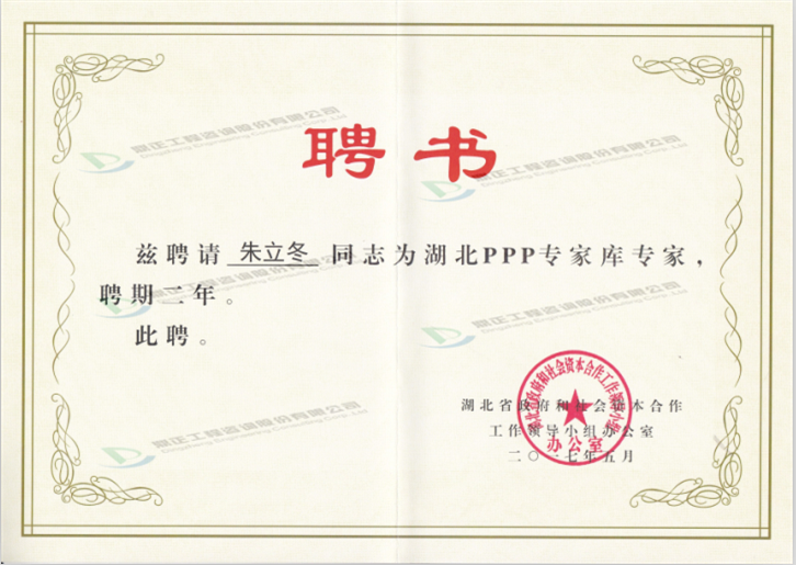 近日,湖北省政府和社會資本合作工作領導小組辦公室授予鼎正公司董事長王雁然先生、副總經(jīng)理兼技術總監(jiān)朱立冬教授為湖北省PPP專家?guī)鞂<?。此?/SPAN>