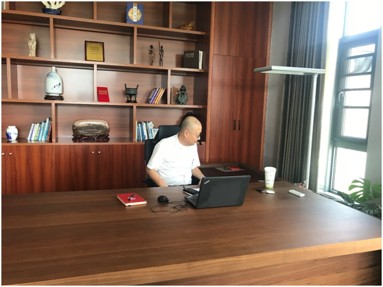 一行人來(lái)到三樓寬敞明亮、古樸簡(jiǎn)潔、視野遼闊的董事長(zhǎng)王雁然先生的辦公室時(shí),尹教授忍不住坐在班臺(tái)感受一番。