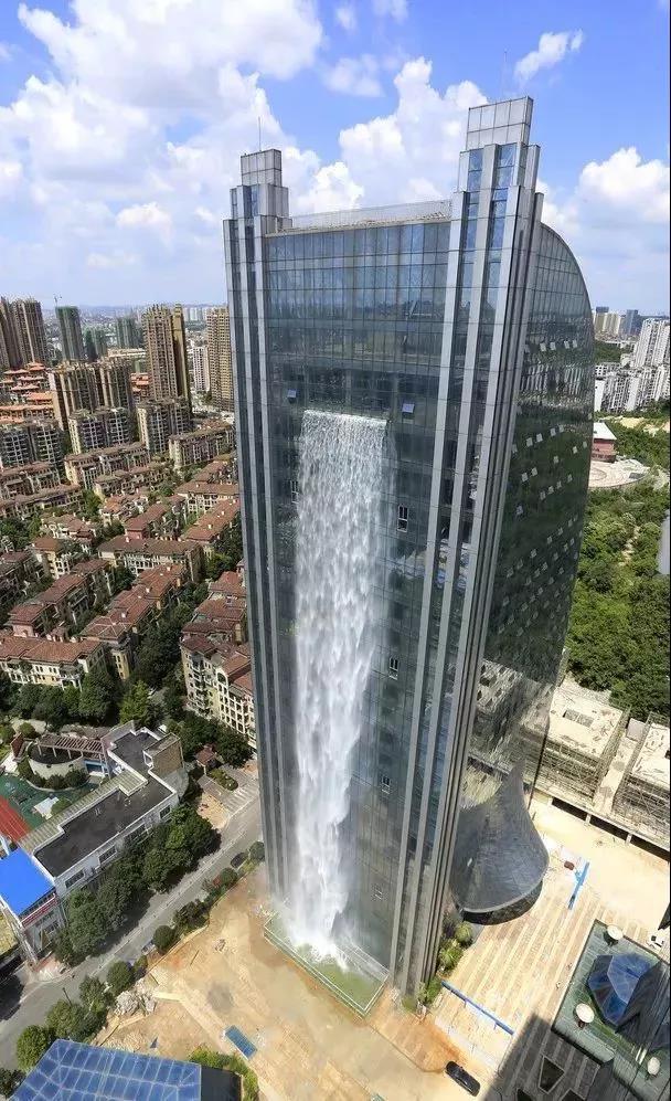 據(jù)大廈相關(guān)負(fù)責(zé)人介紹,這是烈變廣場設(shè)計的一個景觀瀑布,樓層總高有121米,瀑布設(shè)計高度為108米,現(xiàn)在是貴陽市唯一的瀑布大廈,在瀑布正下方,是一個大型的蓄水池,瀑布用的水平時就儲存在水池里。
