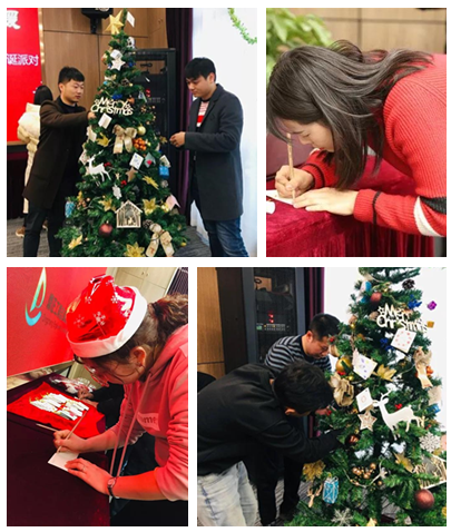 平安夜,行政人事部的同事們化身“圣誕老人”,貼心的為每一位同事準(zhǔn)備了平安果;由鼎正大家庭共同裝飾的圣誕樹(shù)掛滿了大家親手寫(xiě)的祝??ㄆ?,為圣誕節(jié)的到來(lái)更添一份濃濃的節(jié)日色彩。
