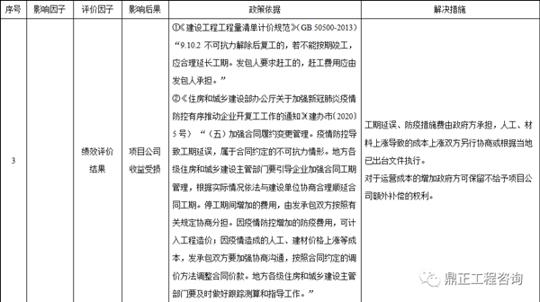 在控制最嚴(yán)的1-2月,全國(guó)大部分項(xiàng)目處于停工狀態(tài),即便通過(guò)后期補(bǔ)救措施適當(dāng)?shù)刳s工,但停工停業(yè)等行政命令在一定時(shí)期內(nèi)造成工期的延誤是必然的,也將影響政府方對(duì)PPP項(xiàng)目建設(shè)期績(jī)效評(píng)價(jià)的評(píng)分。